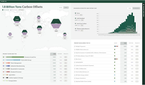 Sort all the voluntary carbon market projects in the registry by geographic location, scope and type, and other criteria.